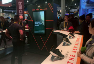 Značka Under Armour je velice populární oděvní značka zejména v USA. Je tradičně zaměřena na sportovce a letos se stala jednou z hlavních značek na trhu. Má svou vlastní Keynote a na stánku představuje novou kolekci chytrých bot a dalších doplňků. Na rozdíl od Nike či Adidasu evidetně hodně vsází na technologie.