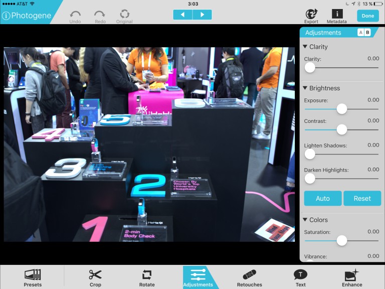 Je vidět, že aplikace nebyla ještě optimalizována pro iOS9. Používá starou virtuální klávesnici, nepodporuje splitscreen a uživatelské rozhraní vypadá hodně oldschool. Na druhou stranu je stabilní, na iPadu Pro jsem během cca týdne používání nezaznamenal jediný problém. Je rychlá, umí to, co je potřeba, a ukazuje, že práce s RAW by na iPadu Pro problém nebyla, kdyby byl dostatek aplikací. Když je člověk zvyklý na Lightroom z počítače, je práce v Photogene trochu jako návrat k Photoshopu, ale přeci jen lehce rychlejší.