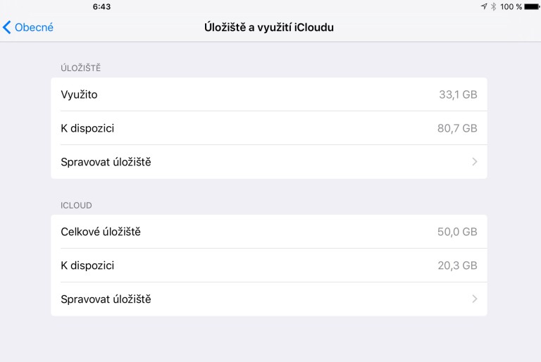 Obecně se dá říct, že díky iCloudu vám může stačit menší úložiště, než jste byli zvyklý u počítače. iOS zabírá méně místa než OS X a i samotné aplikace jsou většinou menší. Přesto si myslím, že 128GB verze je pro plnohodnotnou práci na iPadu Pro velice rozumná volba.