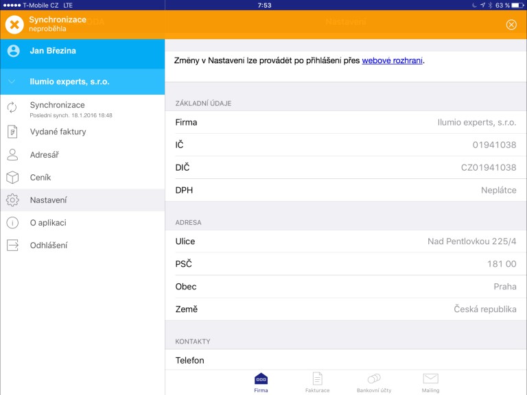 Vše na první pohled vypadalo velice jednoduše. Na www.mpohoda.cz si založíte uživatelský účet, v něm nastavíte základní údaje o firmě a můžete začít. Účet je zdarma, aplikace pro iPhone, iPad či Android také a účetní si poměrně jednoduše umí „zasynchronizovat“ data do svého účetního programu. Dokonce si pod jedním účtem lze založit víc firem, k mPohodě jde přistupovat i přes web, umožňuje přístup více uživatelů atd. Vše znělo skvěle.