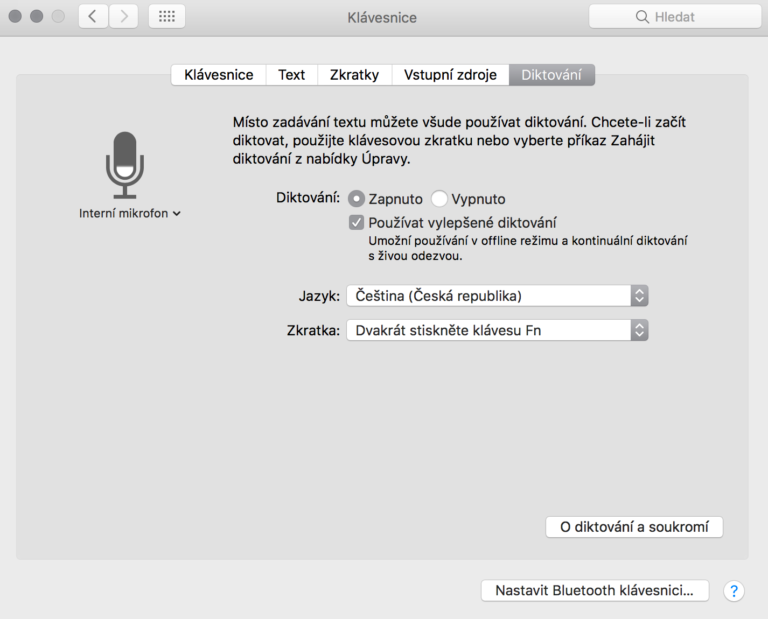 JAK DIKTOVÁNÍ V ČEŠTINĚ NA MACOS SIERRA NASTAVIT?