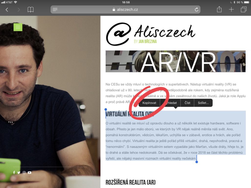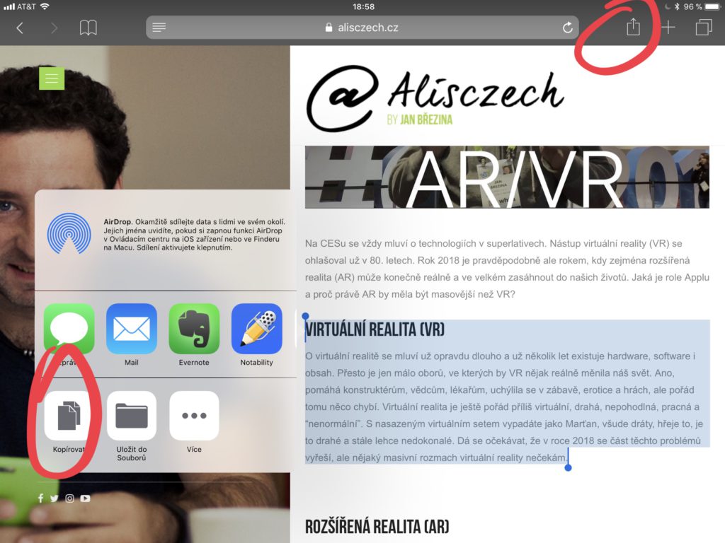 Označte text, který chcete kopírovat. Potom klikněte na tlačítko Sdílení, pokud jej aplikace má, a vyberte Kopírovat. Tím se trochu překvapivě zkopíruje text bez formátu. Pak už se stačí přepnout do cílové aplikace a text vložit. Postup samozřejmě nefunguje všude, protože některé aplikace sdílení nemají. Někdy je sdílení v kontextovém menu.
