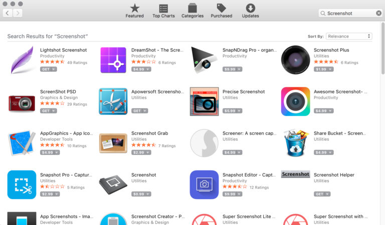 Grab je bezplatné řešení, které zvyšuje komfort při vytváření otisků obrazovky. Není úplně dokonalý, ale většinou stačí. Pokud jste ochotni si trochu připlatit, mrkněte do MacAppStoru a zadejte do vyhledávání slovo Screenshot. Objeví se solidní seznam komerčních aplikací.
