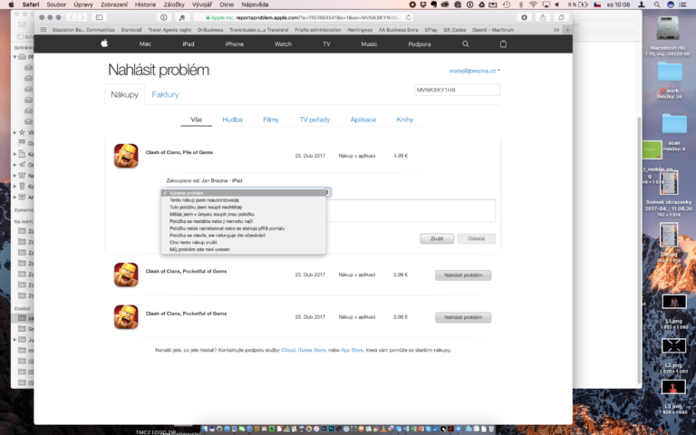 DŮVODY ŽÁDOSTI O VRÁCENÍ PENĚZ V APPSTORE