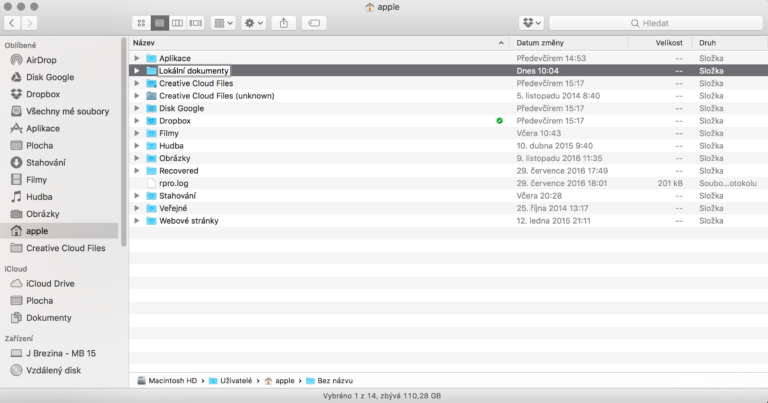 iCloud Drive nabízí jen dvě možnosti. Buď synchronizujete vše co je v Dokumenty a Plocha a nebo nic. Řešením je vytvořit si nový adresář lokální dokumenty, který se logicky do synchronizace nezahrnuje. Co dáte do něj se synchronizovat nebude. Jak na to?