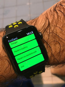 - Druhou možností je pustit aplikaci Cvičení a vybrat buď plavání venku či uvnitř. Po spuštění cvičení se hodinky přepnou do vodotěsného režimu automaticky.