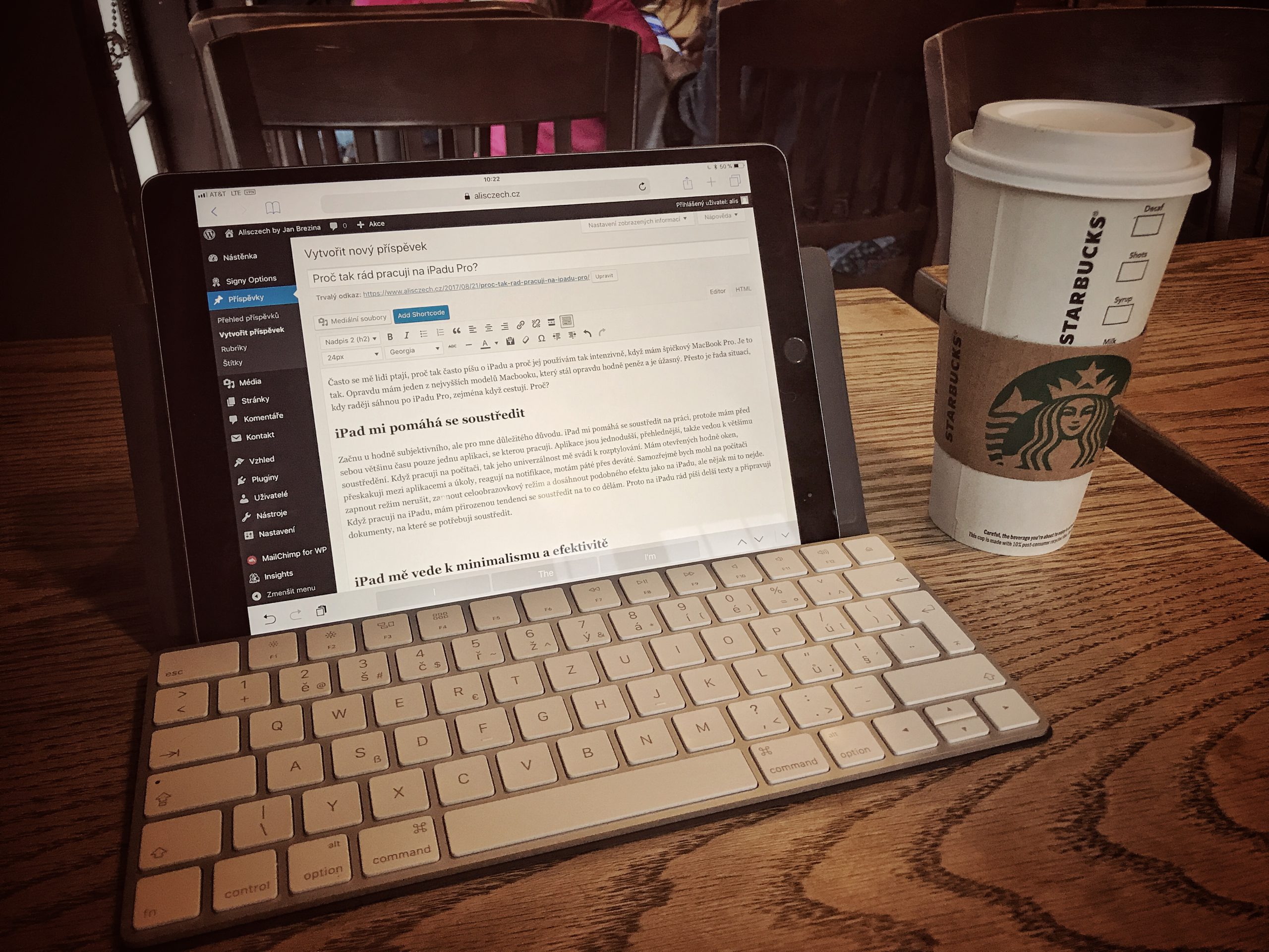 Začnu u hodně subjektivního, ale pro mne důležitého důvodu. iPad mi pomáhá se soustředit na práci, protože mám před sebou většinu času pouze jednu aplikaci, se kterou pracuji. Aplikace jsou jednodušší, přehlednější, takže vedou k většímu soustředění. Když pracuji na počítači, tak jeho univerzálnost mě svádí k rozptylování. Mám otevřených hodně oken, přeskakuji mezi aplikacemi a úkoly, reagují na notifikace, motám páté přes deváté. Samozřejmě bych mohl na počítači zapnout režim nerušit, zapnout celoobrazovkový režim a dosáhnout podobného efektu jako na iPadu, ale nějak mi to nejde. Když pracuji na iPadu, mám přirozenou tendenci se soustředit na to co dělám. Proto na iPadu rád píši delší texty a připravuji dokumenty, na které se potřebuji soustředit.