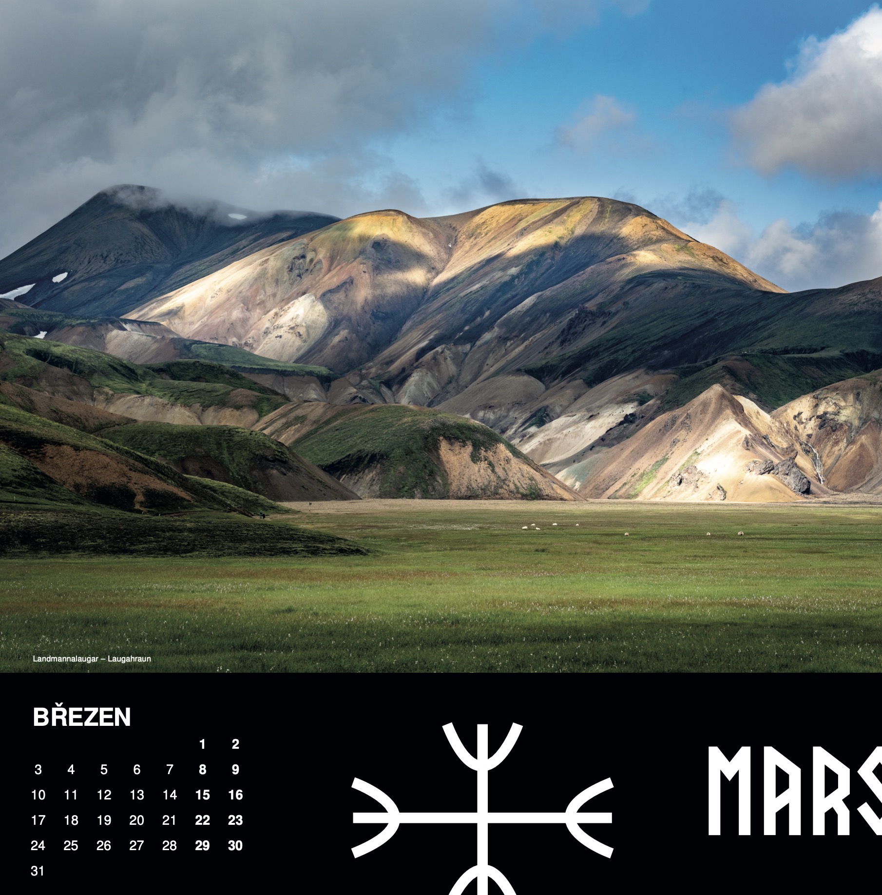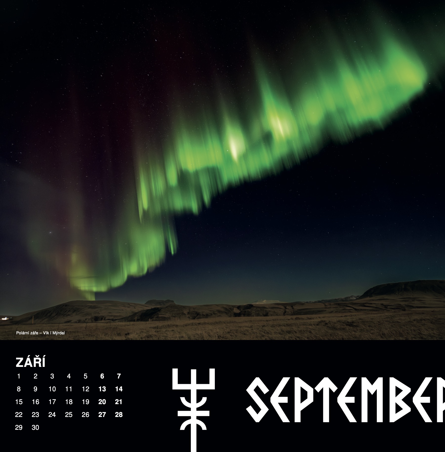 Při cestách na Island se vždy snažím naučit nějaká nová islandská slova a dozvědět se něco nového o islandské kultuře. Proto je letošní kalendář dvojjazyčný a doplněný o islandské runy. Doufám, že vás to inspiruje k dalšímu objevování islandské přírody, zvyků, kultury a historie.