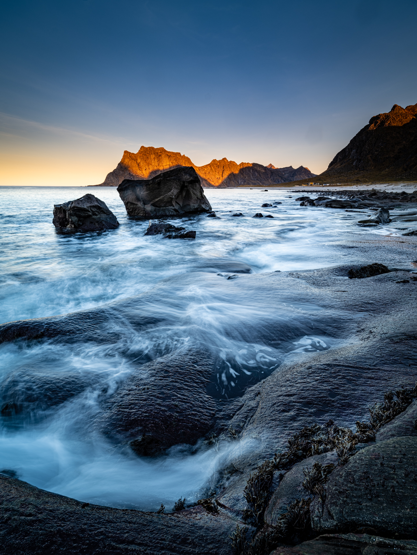 Lofoty jsou souostrovím propojeným mosty a tunely, které má v sobě unikátní krásu. Hory padají přímo do moře, úzká a hluboká údolí vytvářejí unikátní tvary a v zimě zde skoro nenarazíte na živáčka. Kromě pár vesnic a trochy povozu na hlavní silnici E10 si můžete užívat dny plné krásy a samoty.