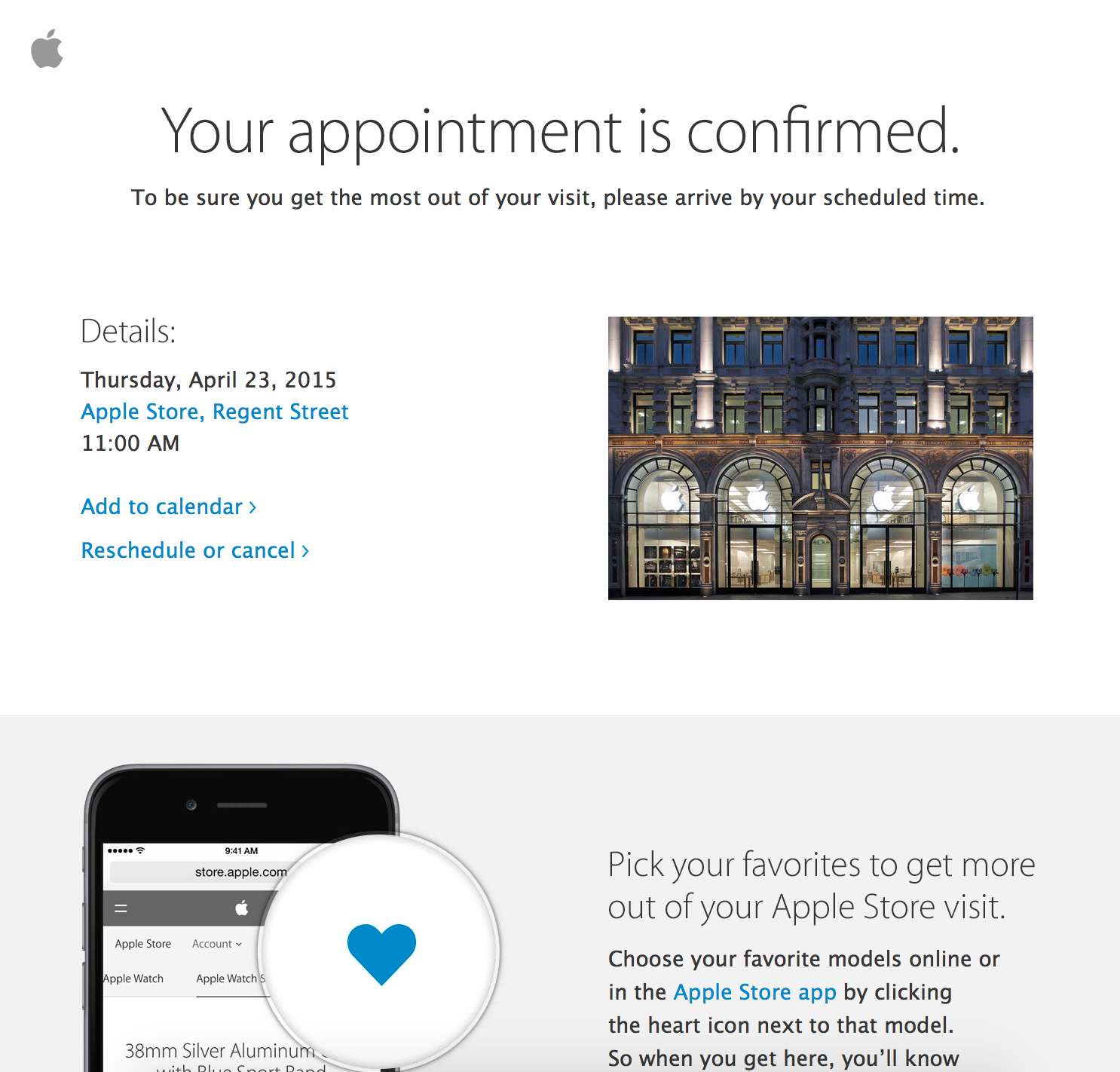 Hodinky se dnes začaly prodávat na šesti vybraných trzích, ale prodejní model se výrazně změnil. Už žádné fronty před obchodem, ve kterých skalní fanoušci značky dávají na odiv svou oddanost. Dokonce, pokud si chcete v AppleStore nebo u pečlivě vybraných prodejců hodinky vyzkoušet, musíte si dopředu objednat online schůzku s prodejcem. To jsem udělal a na Regent street na mě čekal nevšední zážitek 23. 4. v 11 hodin tamního času.